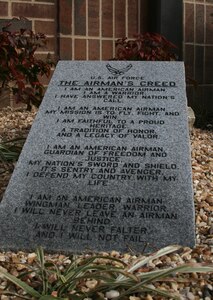 A Mena, Ark., couple who owns a monument company donated to the Arkansas Air National Guard a two-foot by one-foot granite slab with the Airman's Creed engraved on it. The marker created by Stipe Monuments, Inc., owned by Jim and Pauline Moody, was laid near the rear entrance of Building 118 where