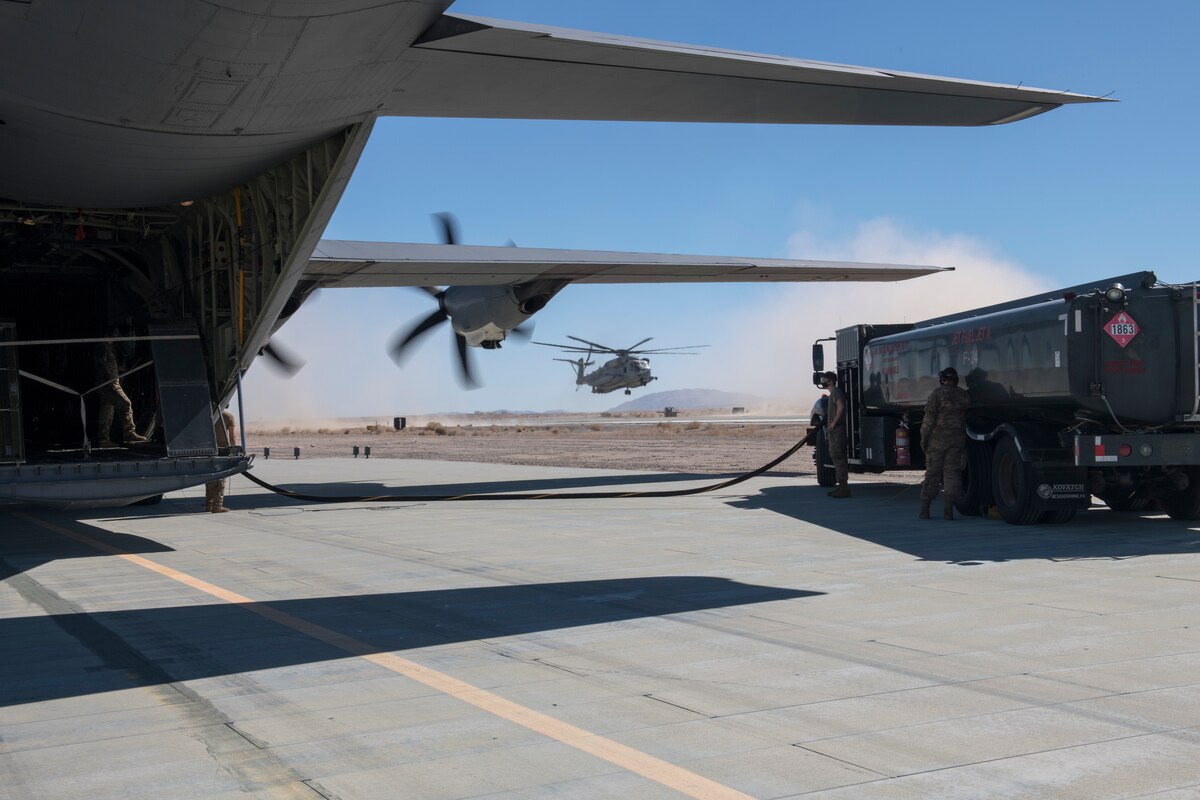 During this exercise, a C-130J wet-wing defueled 24,000 pounds of fuel into an R-11 truck which then refueled two A-10s on the ramp at a Strategic Expeditionary Landing Field (SELF), marking the first time an AMC aircraft conducted actual fueling support of CAF via this TTP.