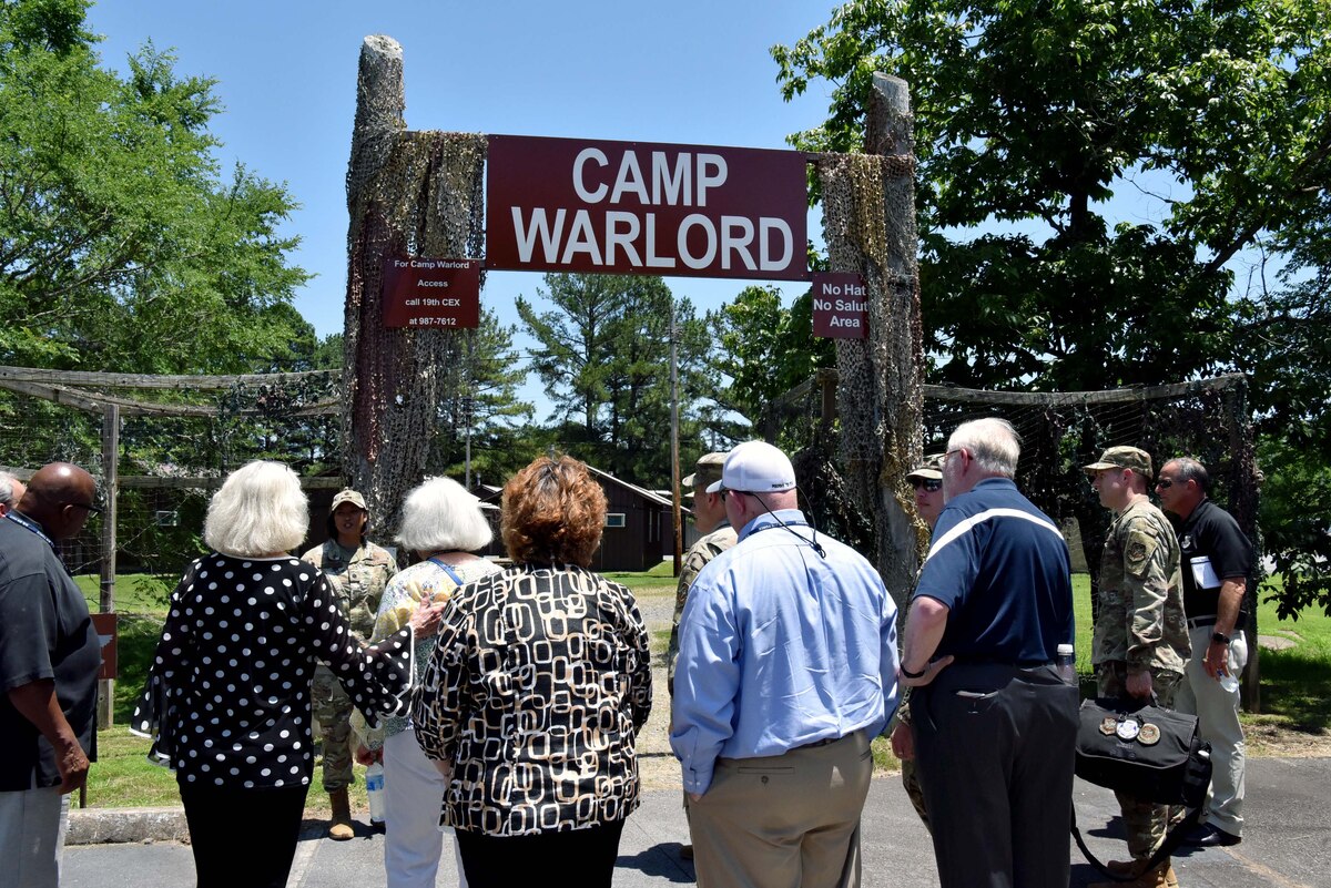 Attendees stopped at Camp Warlord, the installation’s realistic training area, where they participated in expeditionary skills training, including bare base buildup, small-unit tactics and CBRNE training.