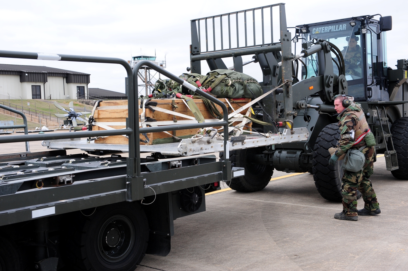 Airman Jessica Brown, 19th Medical Operations Squadron aeromedical space technician, performs self aid buddy care on Staff Sgt. Thomas Williams, 19th MDOS aeromedical space technician, during an exercise March 14, 2011 at Little Rock Air Force Base, Ark. (Photo by U.S. Air Force Senior Airman Jim Araos)