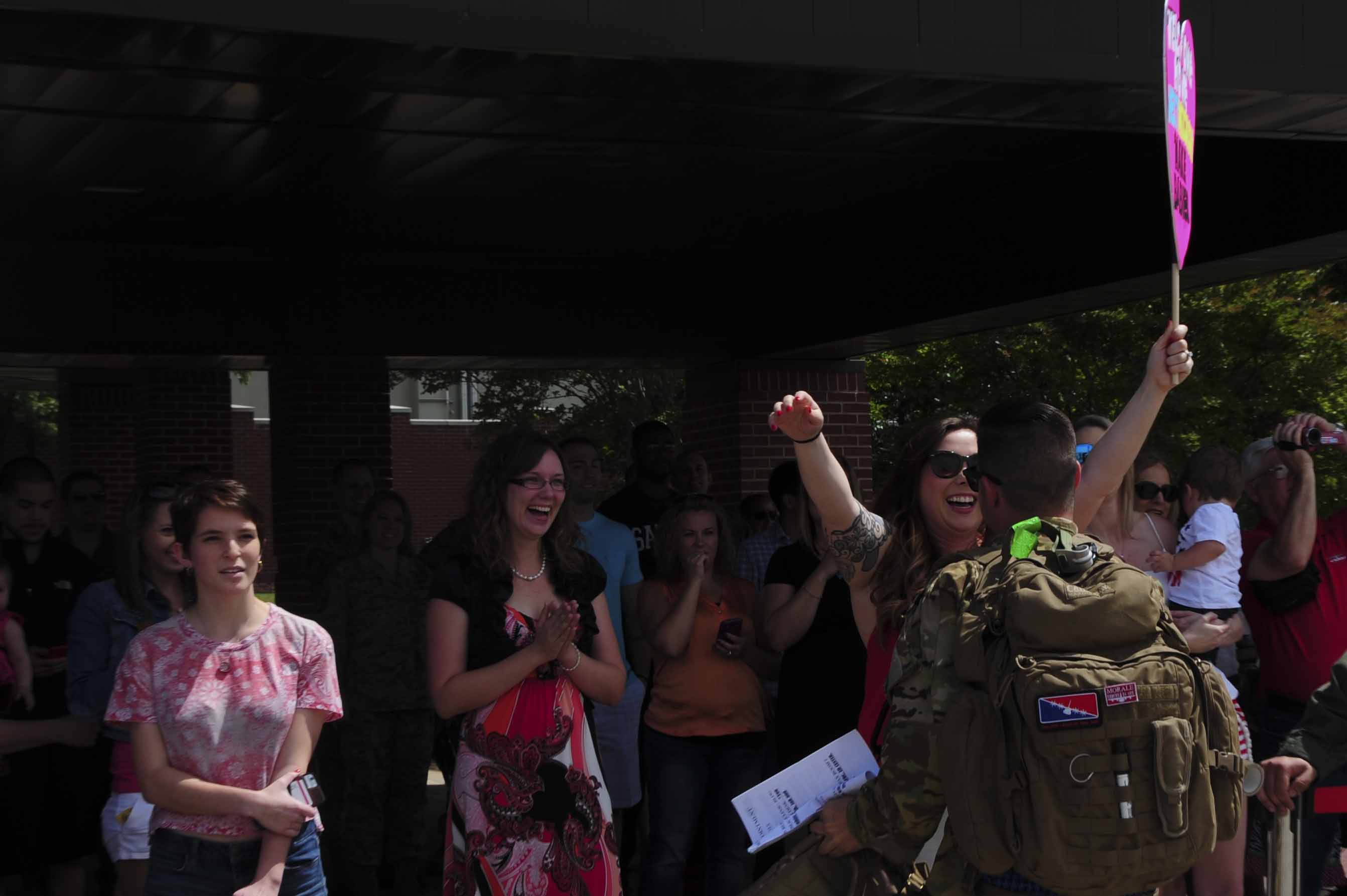 Approximately 50 Team Little Rock Airmen return home to their families and friends May 22, 2015 after supporting contingency operations in Southwest Asia. At any given time there are approximately 400 Airmen deployed from Little Rock Air Force Base. Team Little Rock Airmen specialize in combat airlift and expeditionary support down range. (U.S. Air Force photo by Senior Airman Kaylee Clark)