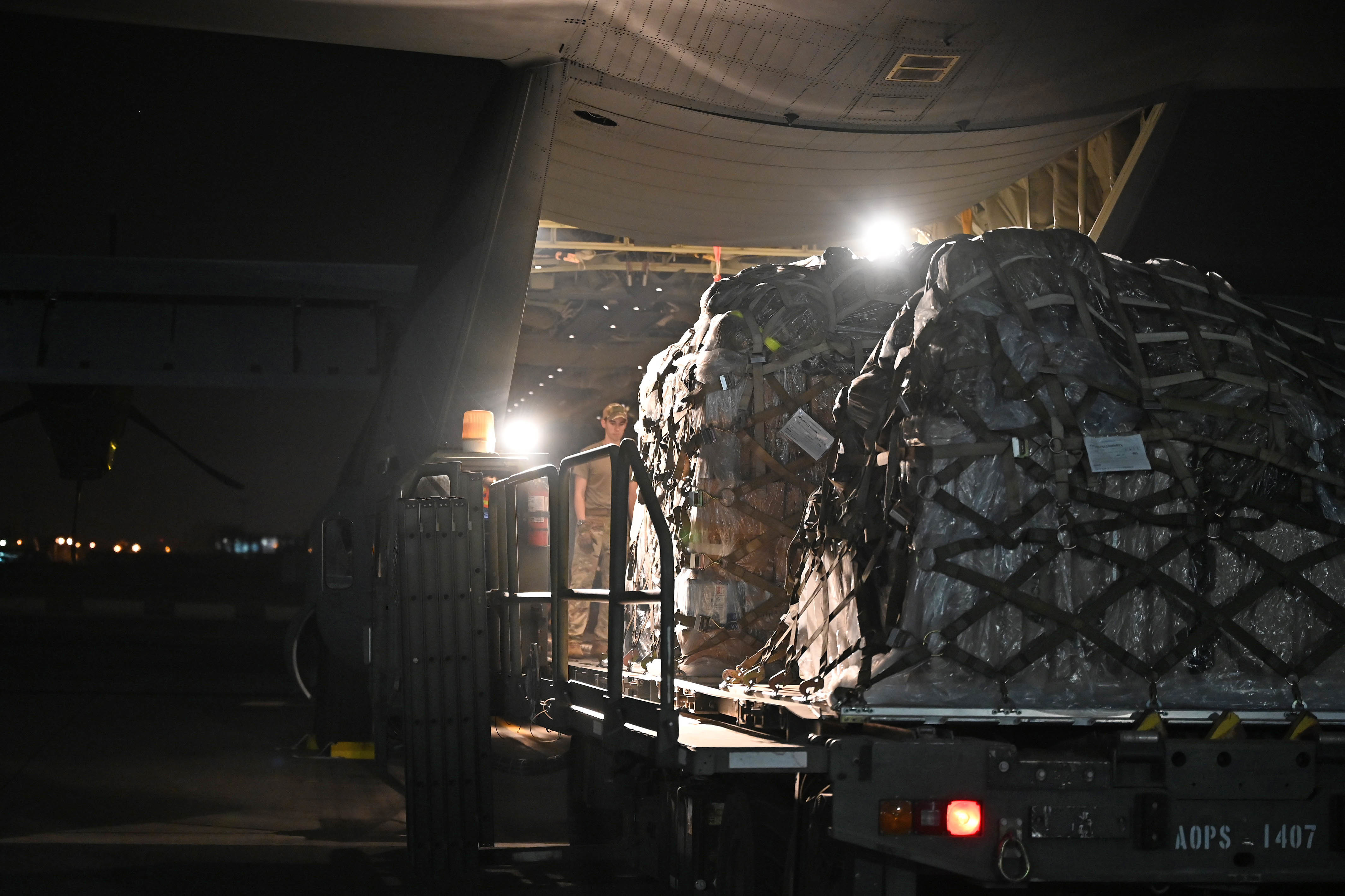U.S. Army Soldiers from Charlie Troop, 2-206 Cavalry, Task Force Bayonet, deployed with the East Africa Response Force (EARF) in support of Combined Joint Task Force - Horn of Africa (CJTF-HOA), load pallets of gear on a C-130J Super Hercules, assigned to the 75th Expeditionary Airlift Squadron during an Emergency Deployment Readiness Exercise (EDRE) at Camp Lemonnier, Djibouti (CLDJ), Sep. 25, 2020. The EARF is responsible for providing combat-ready rapid deployment capabilities to support crisis operations on the African continent. (U.S. Air Force photo by Staff Sgt. Dana J. Cable)